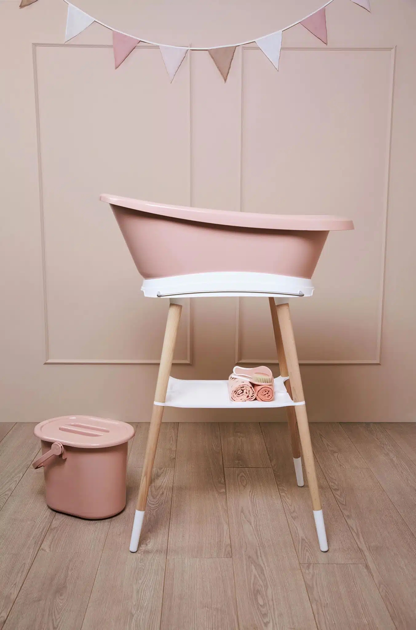A baba fürdetése a kedvenc esti rituálék közé tartozik, melyen gyakran az egész család részt vesz. Az állványra rögzített babakád segítségével a fürdetés történhet egyenesen a gyerekszobában és a kicsit nem kell sehová sem hordani. Az állvány és a babakád így a szoba részévé válik és pozitívan befolyásolja a szobáról keltett benyomást. A Bébé-jou Sense állvány erősíti ezt a benyomást a műanyag és bükkfa kellemes kombinációjával. A babakád és tartozékai certifikált anyagokból készültek és színben tökéletesen kombinálhatók.