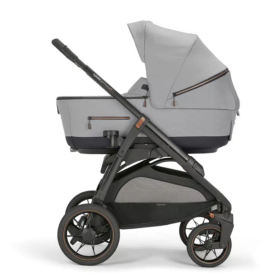 Az Aptica XT RECLAIN 4in1 szett tartalmazza: mózeskosár, matrac, Welcome PadTM, Stand UpTM állvány, Darwin Reclain autósülés, sportülés kupolatetővel, lábzsák, bevásárlókosár, pohártartó, Aptica XT babakocsi váz.