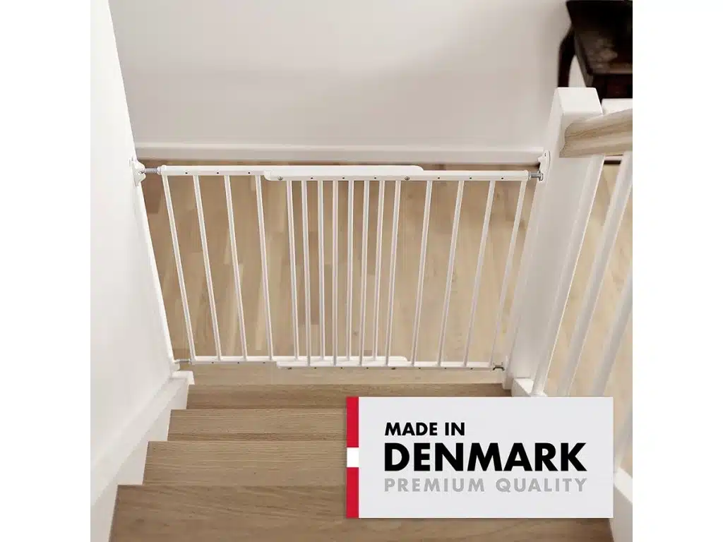 Dániában gyártott, prémium minőségű baba biztonsági rács, amely megfelel a legújabb EN1930:2011 európai biztonsági szabványnak.
