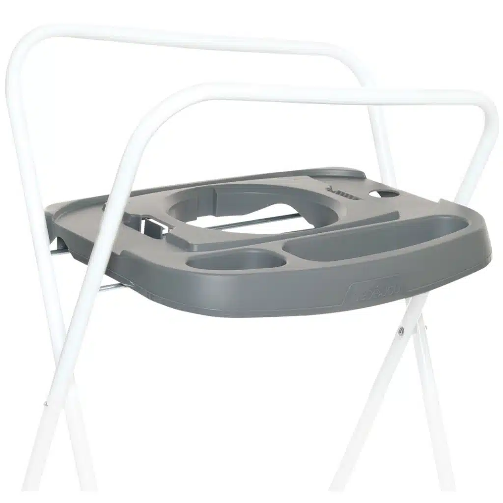 A Bébé-Bubble fürdető vödör szintén rákapcsolható az állványra, így elég egyetlen állvány, melyre a kádat és vödröt is egyaránt fel teheti. Fürdetés közben is fontos a testtartás, ezért az álványon kéznyújtásnyira van a beépített törölköző tartó is. Két külömböző magasságban kapható (98 és 103 cm). Biztonságát a német TÜV tesztelő rendszer bizonyította.