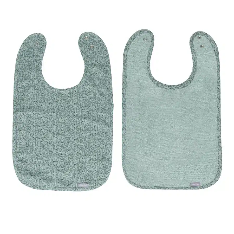 Válassza ezt a két puha, színben összehangolt előkét. Valóban nagyon szépek, minden babának jól állnak. Megvédik a ruházatot anélkül, hogy korlátoznák a babát az ízek felfedezésében.