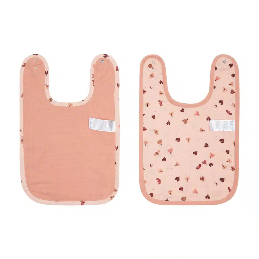 Válassza ezt a két puha, színben összehangolt előkét. Az egyik magas minőségű jacquard frottírból készült szőtt mintával, a másik pedig puha kötött anyagból, frottír hátsó oldallal. Valóban nagyon szépek, minden babának jól állnak. Megvédik a ruházatot anélkül, hogy korlátoznák a babát az ízek felfedezésében.