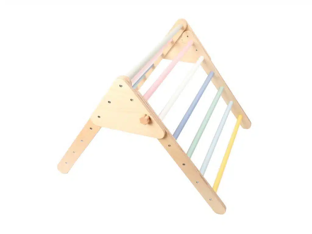 Fa Pikler-féle háromszög mászóka készlet Montessori rámpával – pasztell színekben