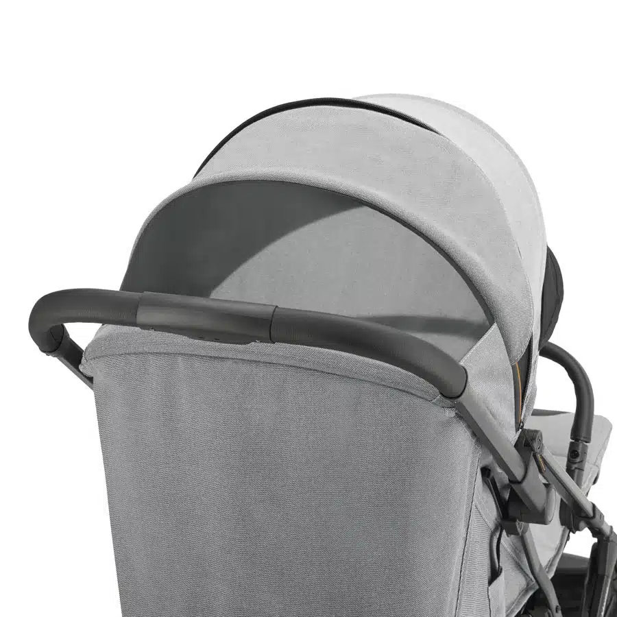 és a kupolatető is, amely UV védelemmel rendelkezik (UPF50+). A cipzárak speciálisak, vízállóak, így bármilyen időjárásban védelmet nyújtanak. - Az összekötött tolókarnak köszönhetően a babakocsi könnyedén kezelhető és irányítható, akár egy kézzel is.