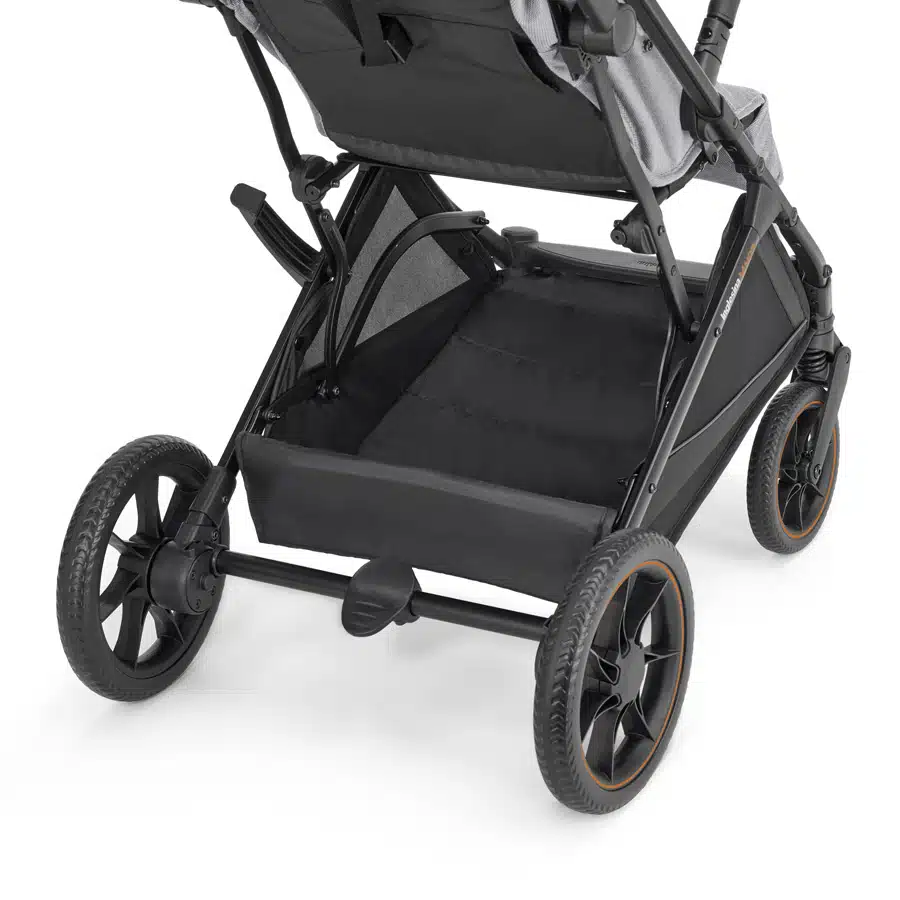 - A tágas bevásárlókosár fényvisszaverő elemekkel van ellátva, így akár sötétben vagy borús időben is teljes biztonságban közlekedhet a babakocsival.
