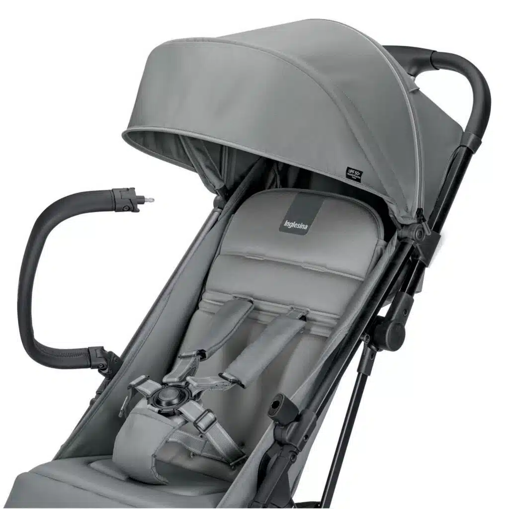 A Now sportbabakocsi tartozékai: babakocsi, biztonsági karfa a gyermek előtt, tágas bevásárlókosár