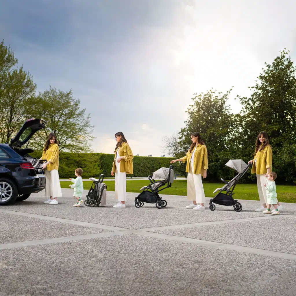 A speciális automatikus összecsukás érintéssel aktiválódik, és a babakocsi egy pillanat alatt összecsukódik. Összecsukva tolókarral felfelé önmaga megáll, így sem a tolókar, sem pedig a huzat nem érintkezik a talajjal, ezért maximálisan higiénikus.