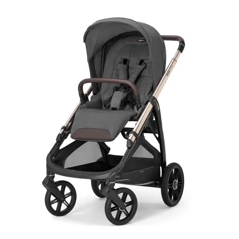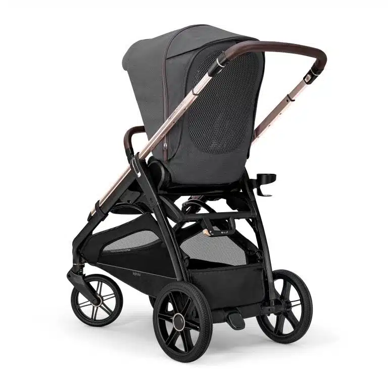 Sport babakocsi GLAM stílusban elegáns sötétszürke huzattal, csillogó részletekkel díszítve, és egy nagy üléssel 22 kg.