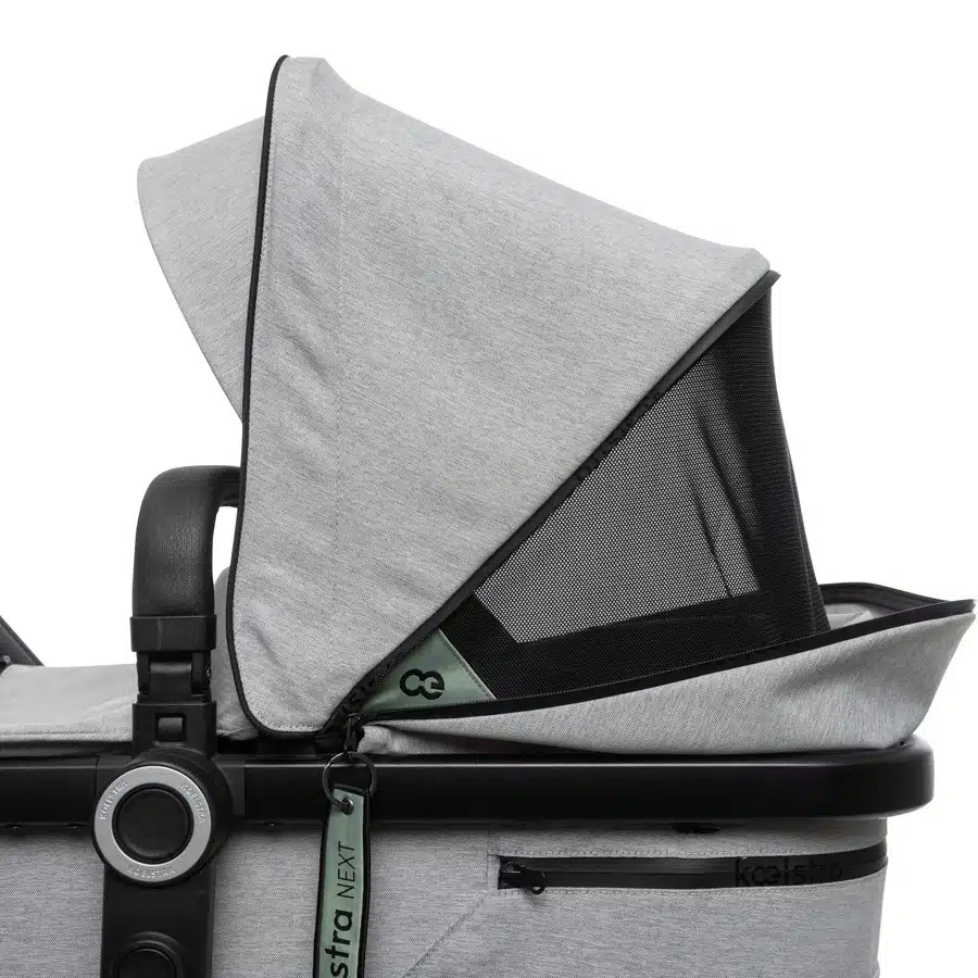 A gyermeket kezdetben 9 kg-ig egy mély, alvázra szerelt mózeskosárban szállítja. Később, amikor a gyerek ül, át lehet váltani sportkocsira, amit akár 22 kg-ig használhatsz. Mindkét esetben bőséges teret és tökéletes kényelmet biztosít a gyermek számára. Az első forgatható és aretácios kerekek megkönnyítik a manőverezést még szűk folyosókon is a polcok között az üzletben. Kényelmes is, az egész sportülés elhelyezhető úgy, hogy a gyerek aludni tudjon. A vázra lehet menetiránnyal szemben vagy menetiránnyal ellentétesen rögzíteni a sportrészt,illetve az alvázzal együtt is összehajtható. Méretének köszönhetően sokáig használhatod a Koelstra Next mély babakocsit.