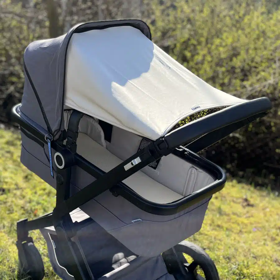 - A napernyö a babakocsi teljes felületét lefedi,szabad levegöáramlást tesz lehetöve,és így kellemes klímát biztosít a mózeskosárban.