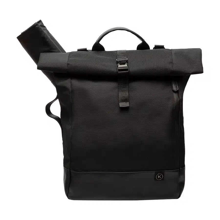 A hátizsák felső lehajtható része cipzárral zárható. Kívül és hátul a hátizsák cipzárral is zárható zsebekkel van ellátva. Emellett a hátizsák az oldalára varrt fogantyúnak köszönhetően oldalt aktatáskaként is viselhető. A hátizsák belső része világos színben van, így belül minden látható.