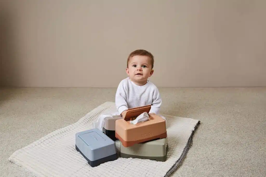 - A több színben kapható törlőkendő tároló része a LUMA Babycare által kínált fürdőszobai kellékek széles választékának.