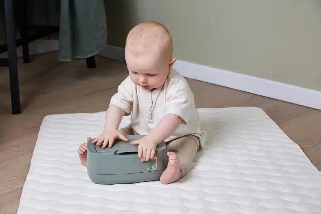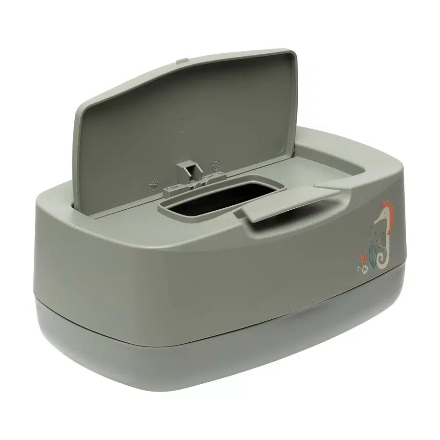 A doboz egy speciálisan kialakított fedéllel rendelkezik, mely védi a kendőket kiszáradástól. Könnyen zárható. speciális kinyitás lehetővé teszi a további törlőkendők könnyű kihúzását. A egy kézzel egyszerűen kinyitható. Szép kiegészítő a pelenkázó lap mellé.